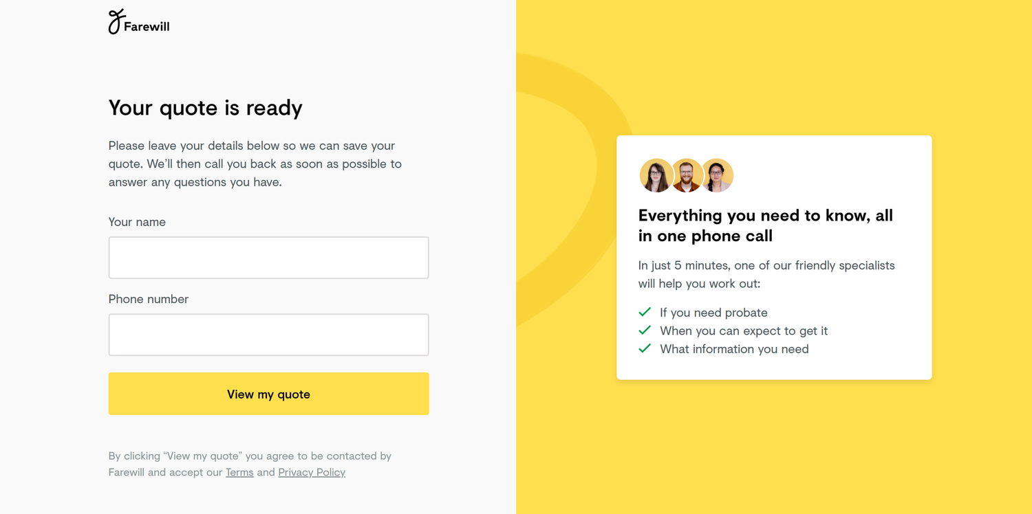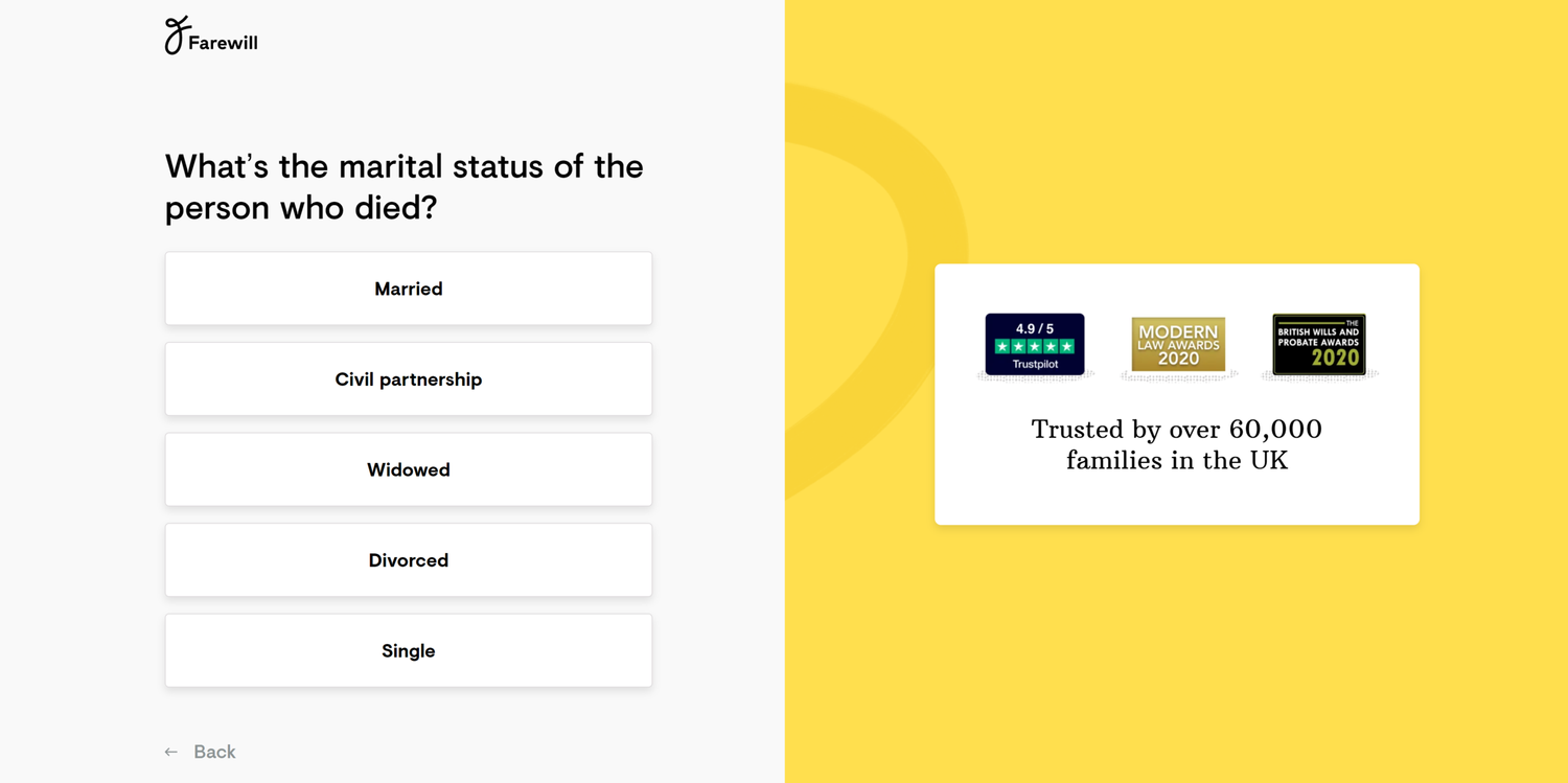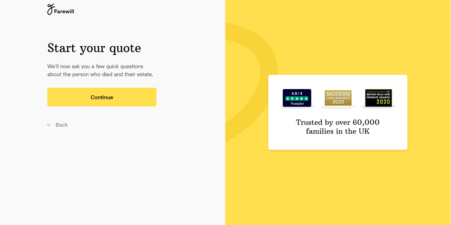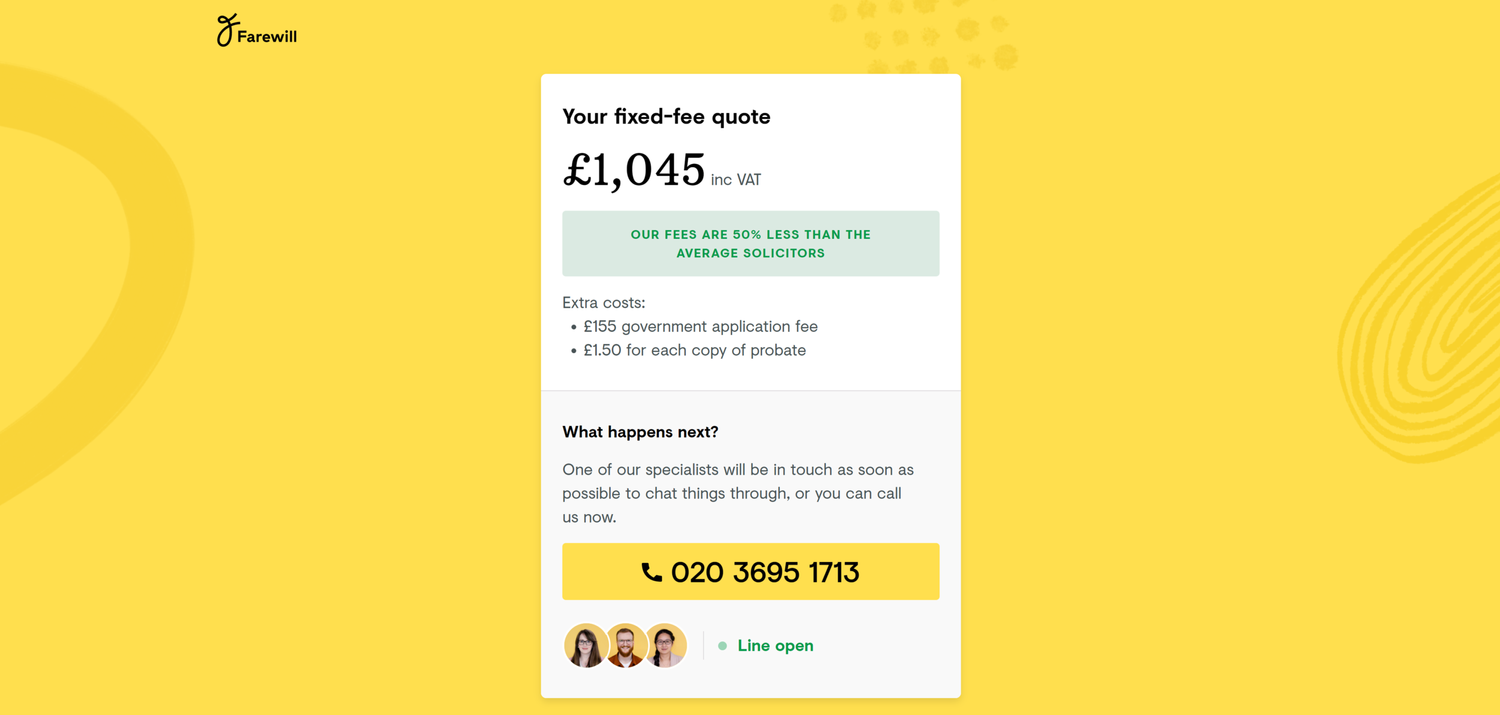That was easier in theory than in practice. Probate is a complicated beast, and there are lots of nuances that can affect the cost. I worked with a product designer, solicitor and salesperson to figure out the different paths people may take through the quote flow.