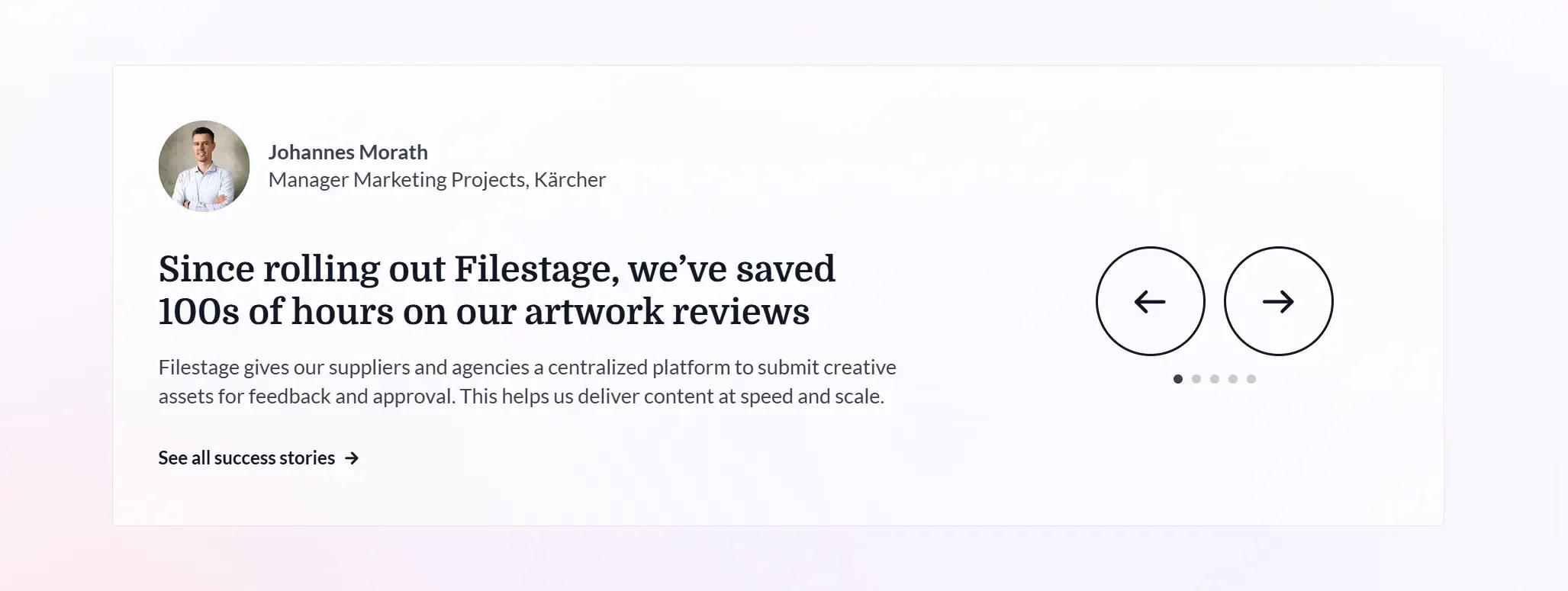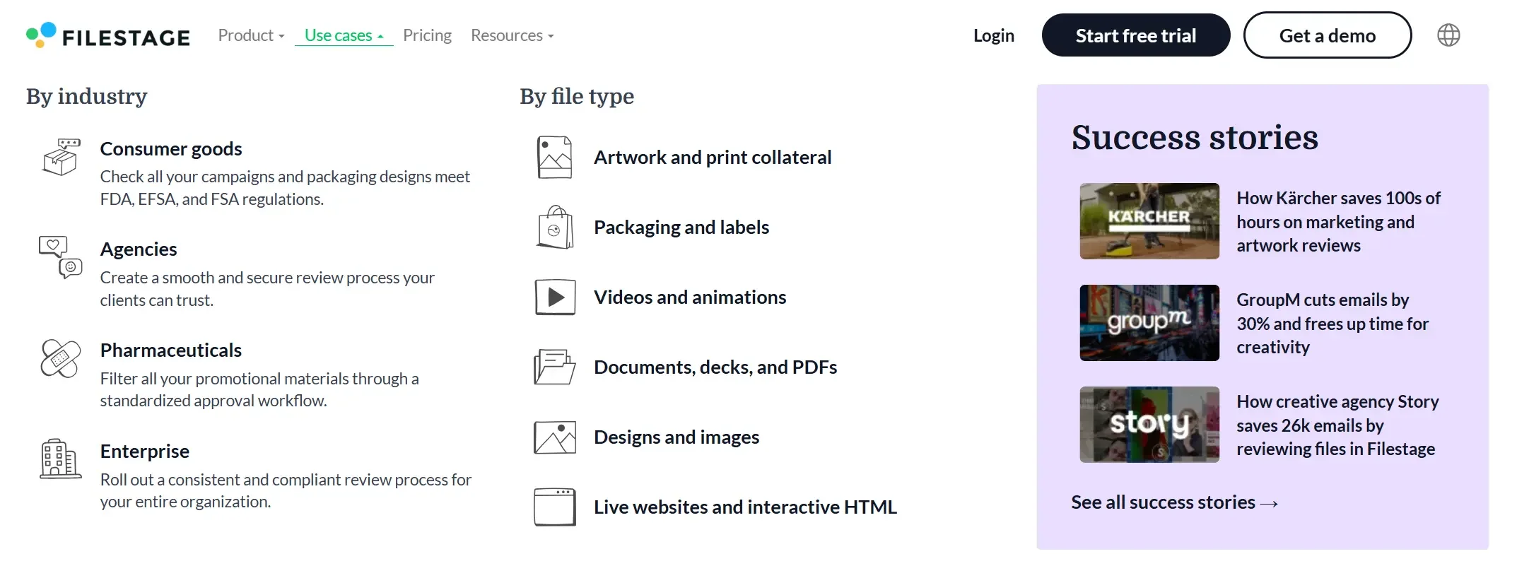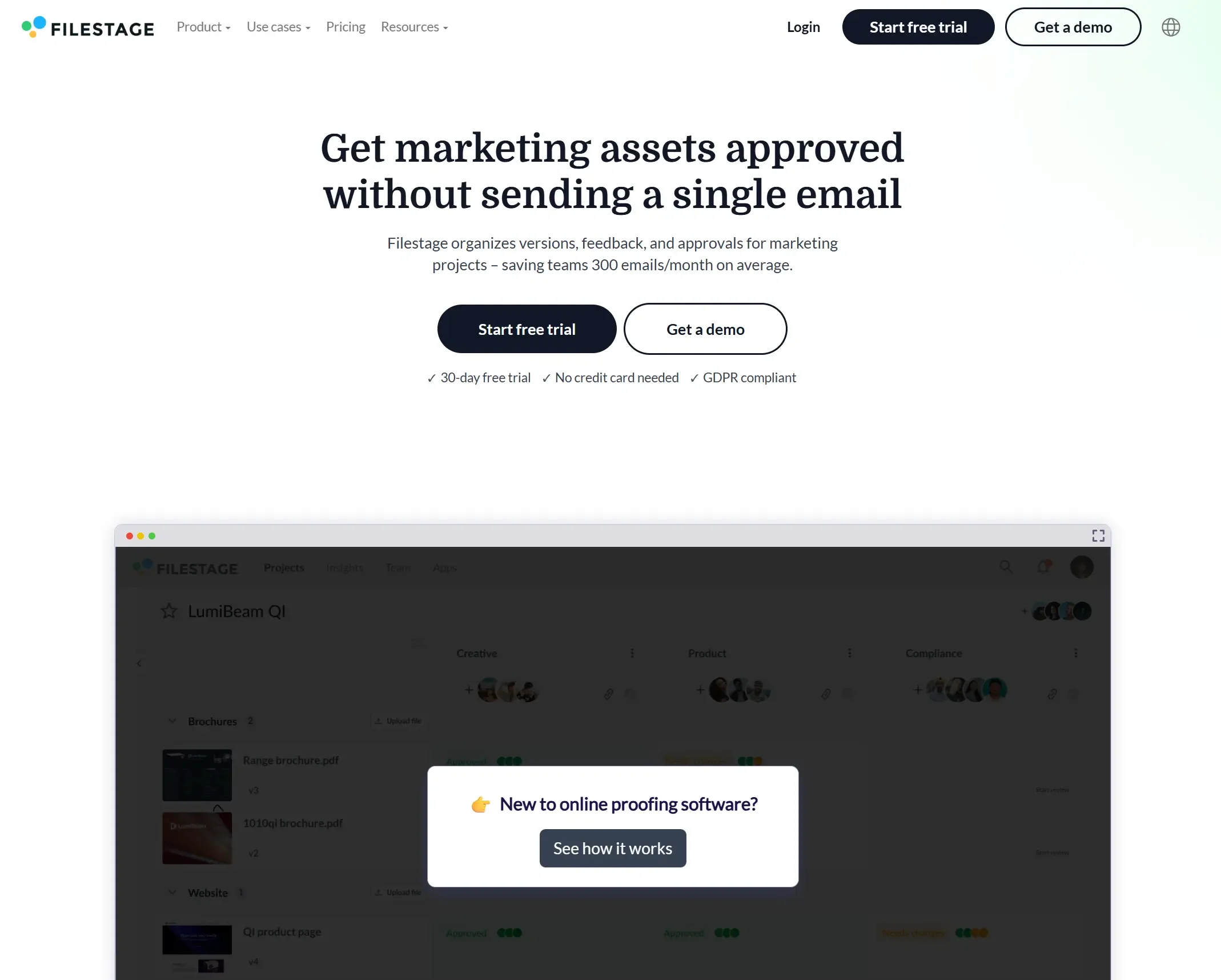 A website that positions Filestage as a market leader in the online proofing space.