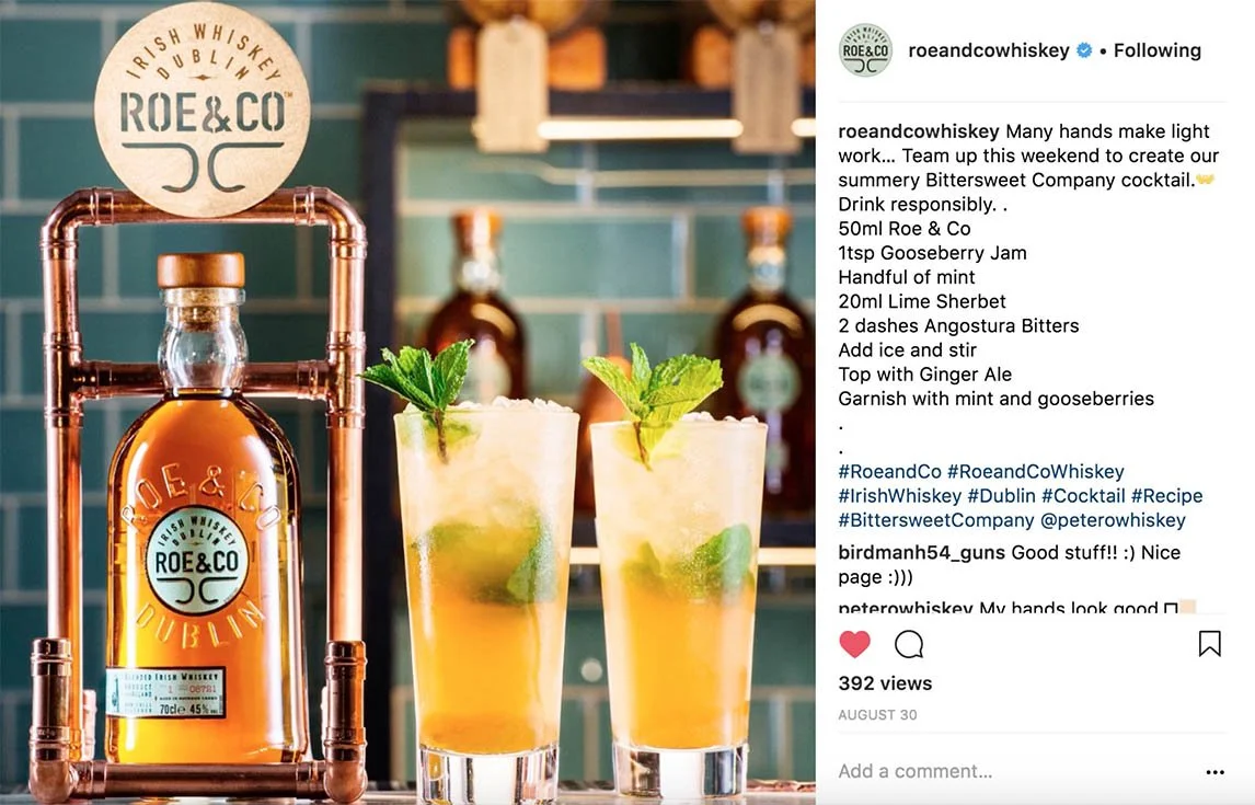 The cocktail videos got over one million views and 13k likes, comments and shares on Roe & Co's social channels.